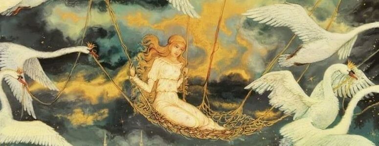 Неимоверно прекрасна, упорна, самоотверженна, с крепким внутренним стержнем. Сама вызывается искать братьев, которые много лет скитаются неизвестно где по свету, а когда узнаёт способ снятия проклятия, решительно соглашается выполнить все условия в ущерб своему здоровью и даже жизни.