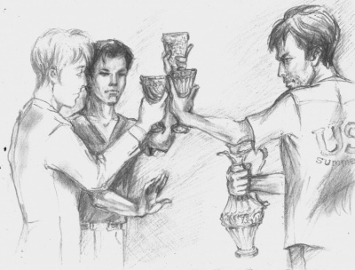 — Встать! Палочки отбросить в сторону, противоположную аврорам! Глаза в пол, руки за голову! — Ворвавшаяся в комнату мальчишек аврорская двойка производила экстренную процедуру ареста. Голые и жалкие преступники стояли столбом под перекрестным двойным невербальным Инкарцеро.