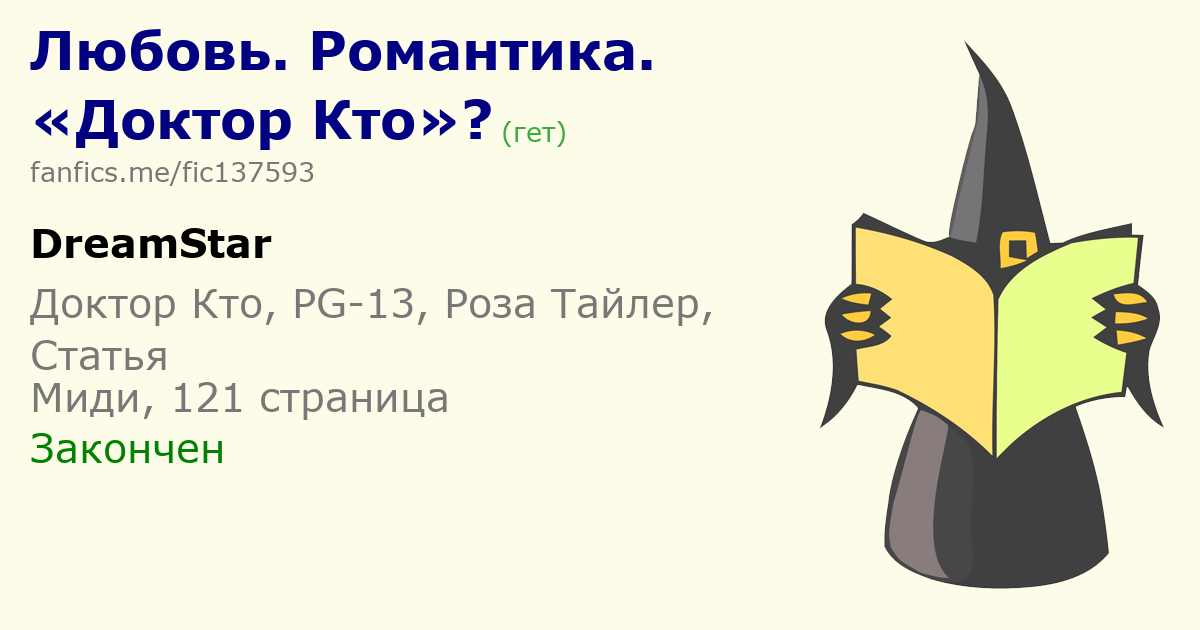 Мини-статьи с рассуждениями о ньюскульных пейрингах сериала «Доктор Кто», романтических интересах главного героя и роли разных спутниц в шоу и жизни Доктора.